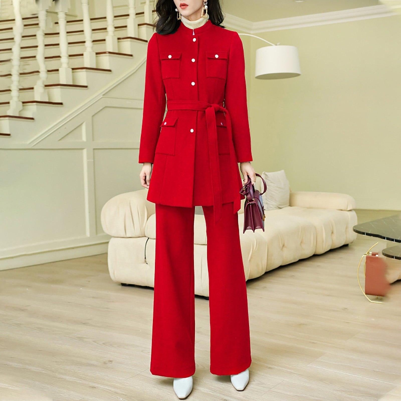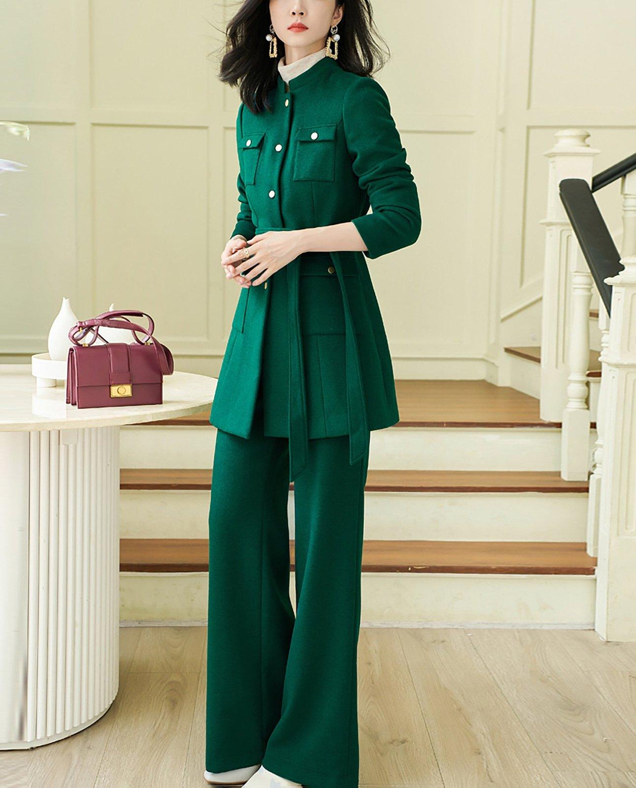 - 50% Wool, 50% Polyester - Dry Clean- Item #3596- Women's wool blend jacket & pants set