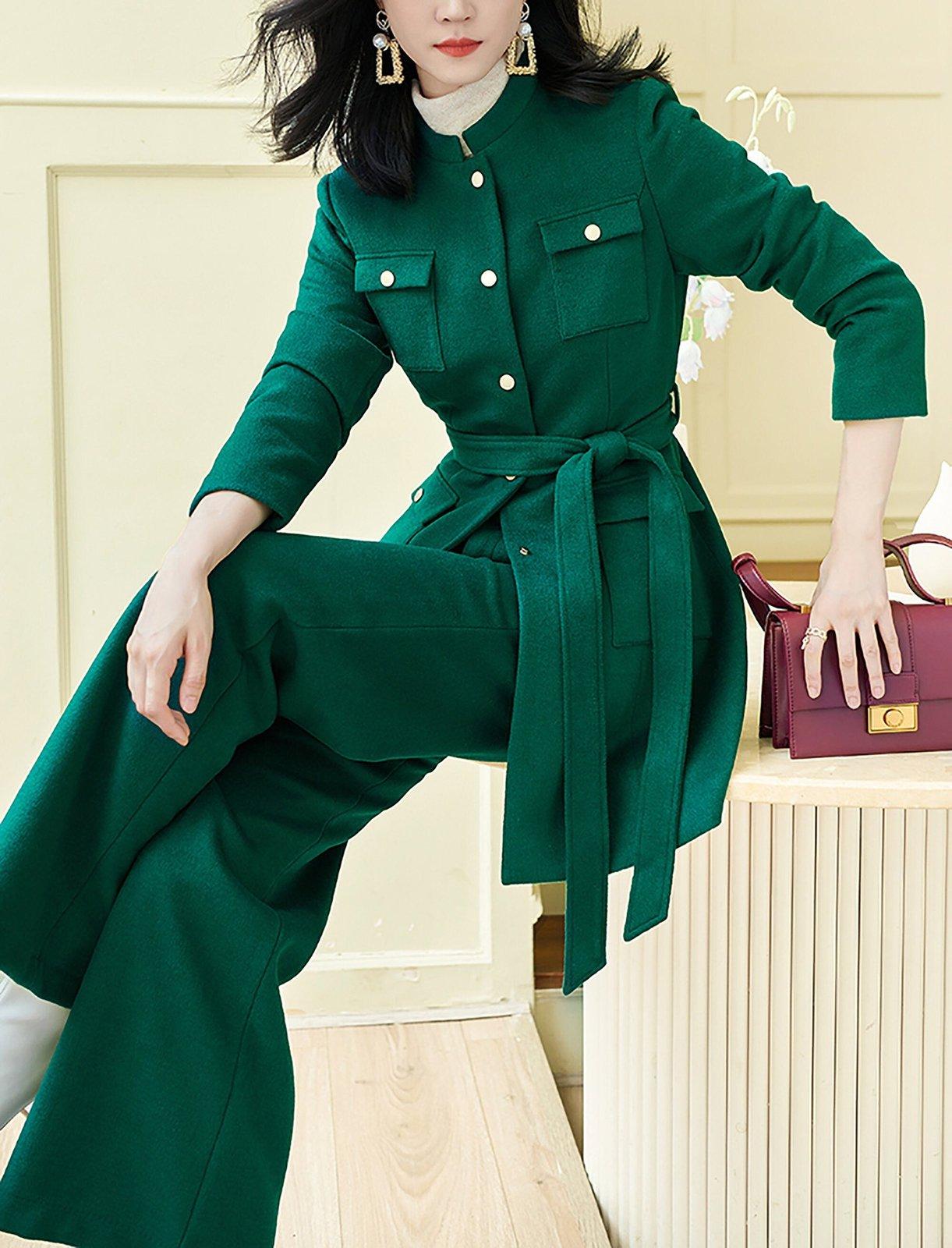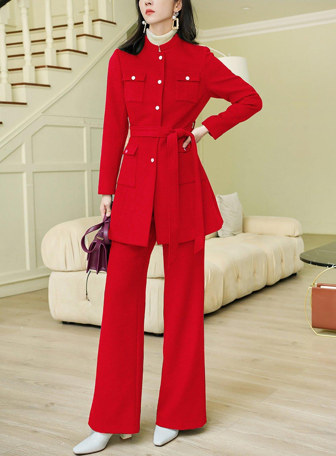 With its collarless jacket and dressy pantsuit, you'll be able to wear it season after season.Jacket