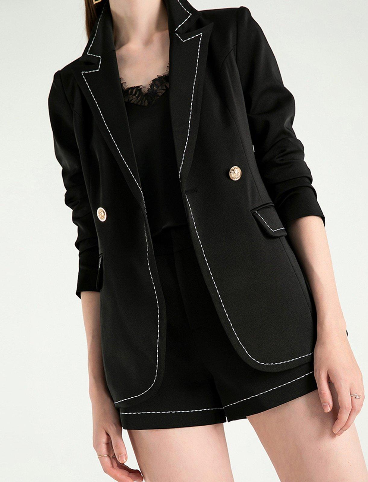 Update your wardrobe with this modern fit & flare blazer with shorts.