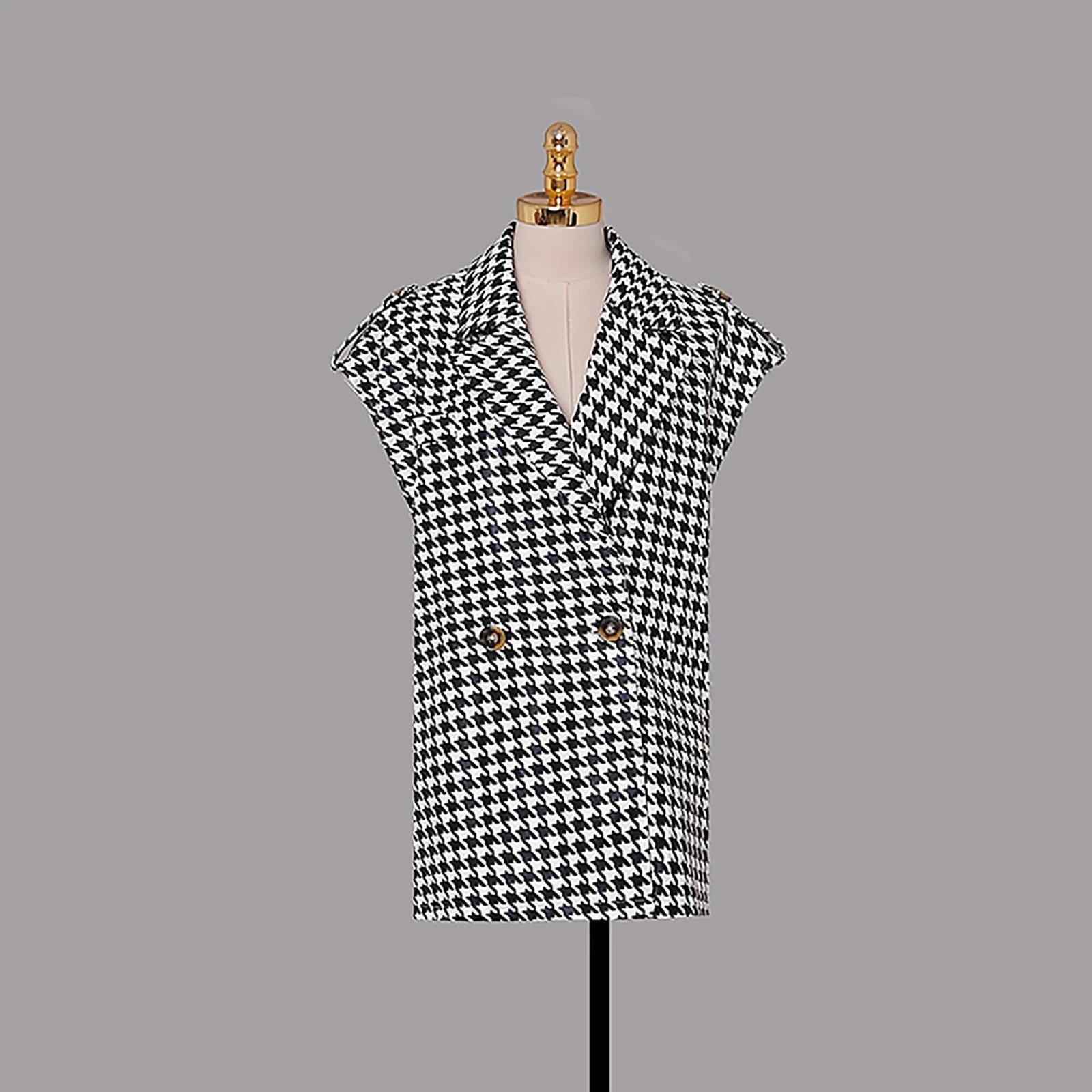 • Houndstooth Vest & Long White Blouse Two-Piece Set