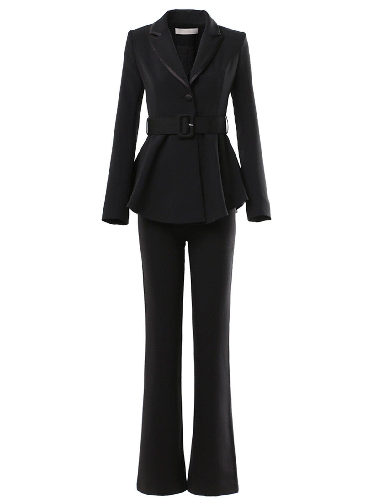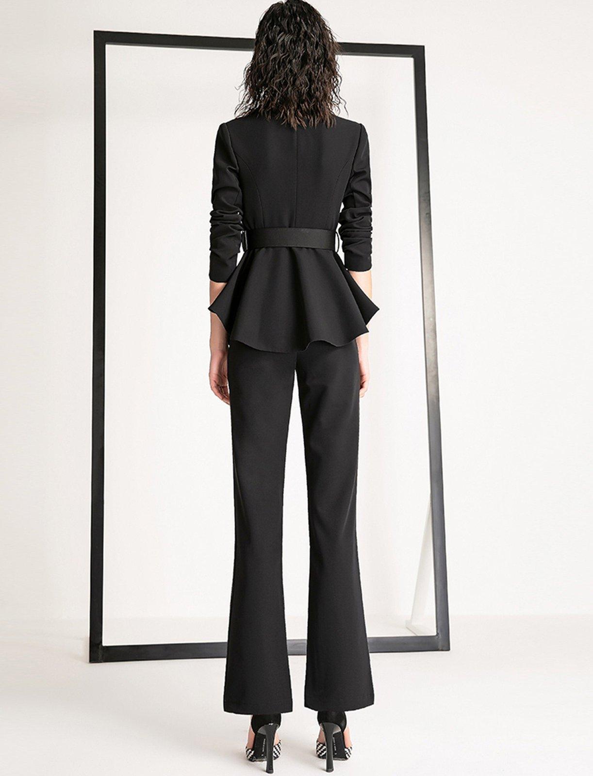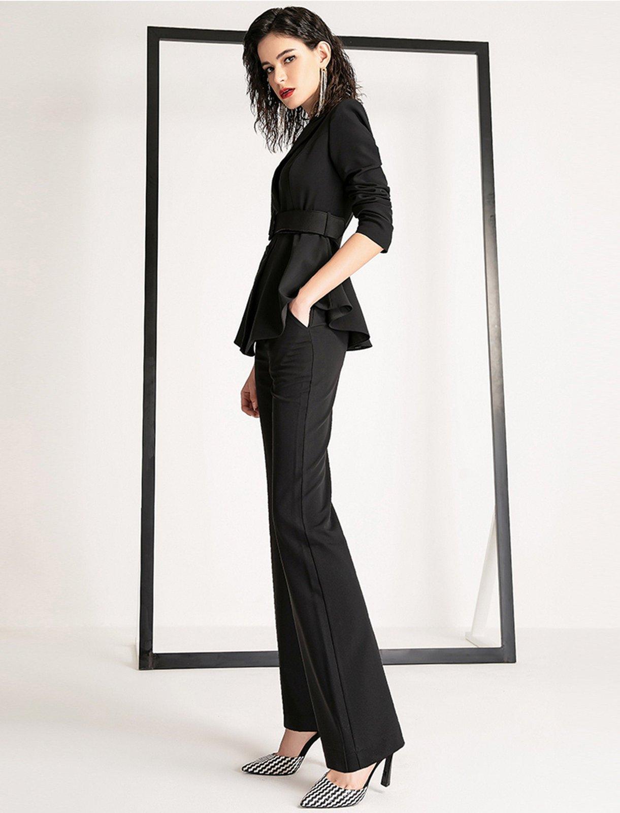 - 89.4% polyester, spandex 10.6%- Dry clean- Item #2374- Women's blazer & pants suit two-piece set