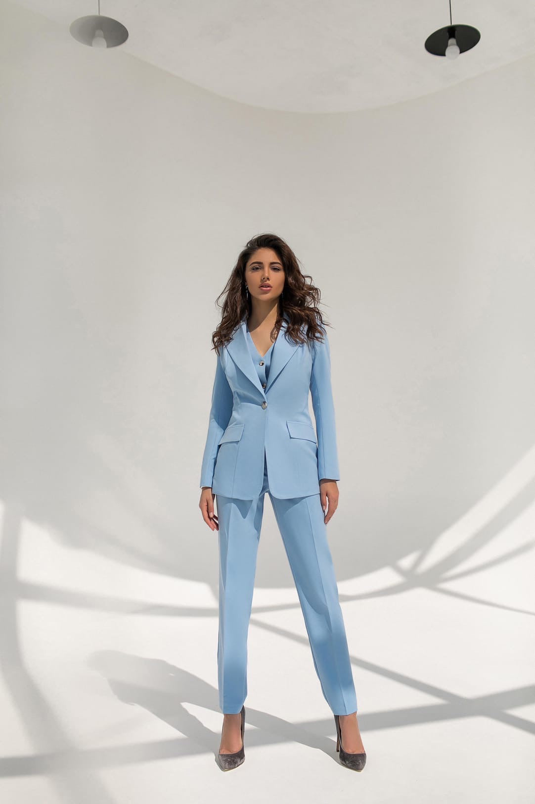 • Sky-Blue Office Regular-Fit 3-Piece Suit