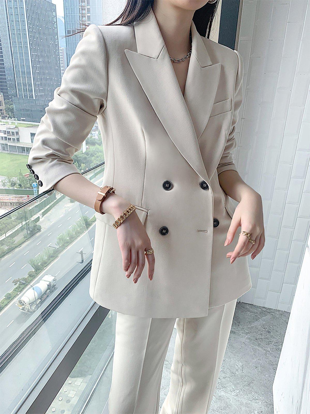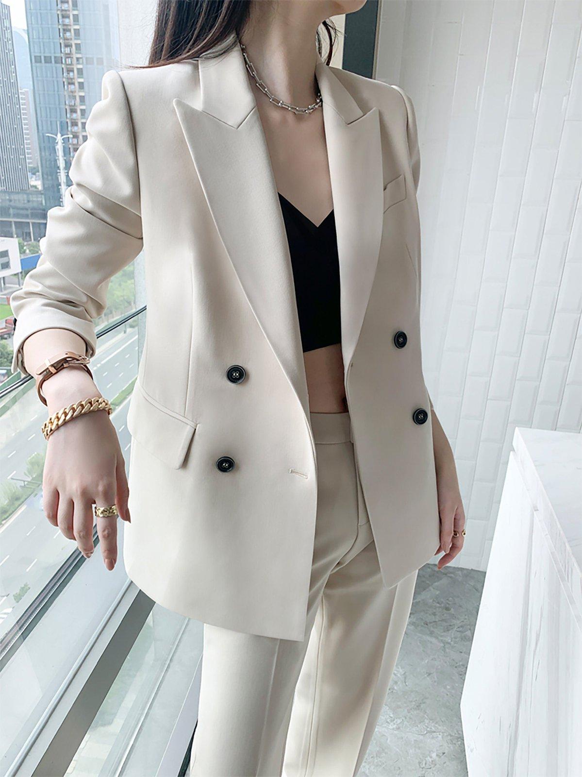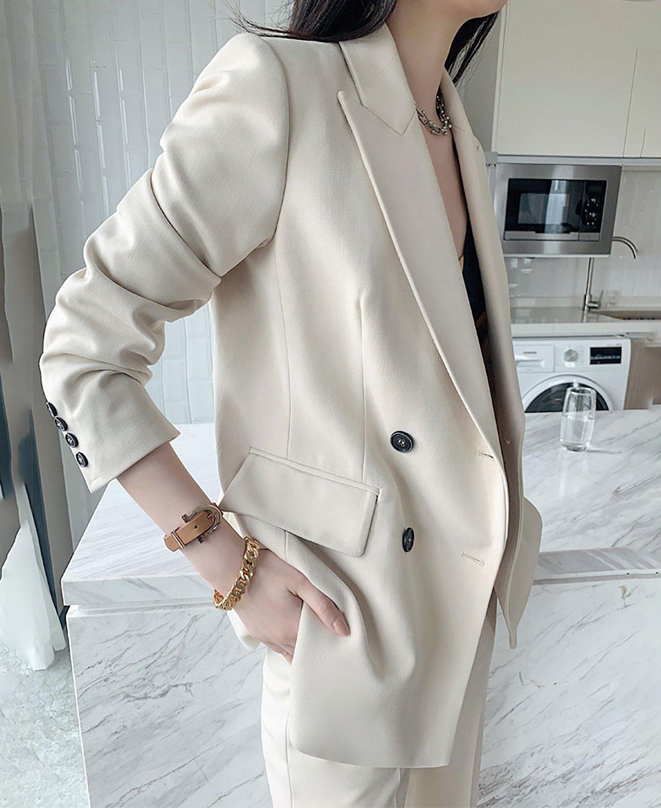 Blazer:●Double-breasted button closure ●Notched lapels ●Cotton Polyester ●Machine wash, line dryPants ●Pull-on style ●Side slant pockets●Cotton Polyester ●Machine wash, line dry