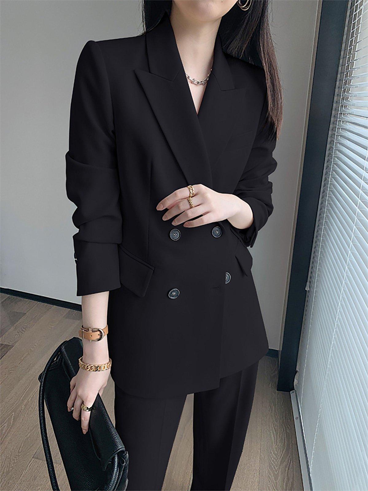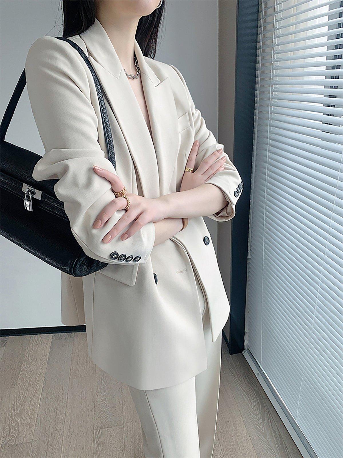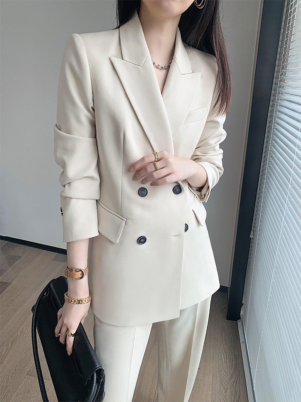 Blazer:●Double-breasted button closure ●Notched lapels ●Cotton Polyester ●Machine wash, line dryPants ●Pull-on style ●Side slant pockets●Cotton Polyester ●Machine wash, line dry