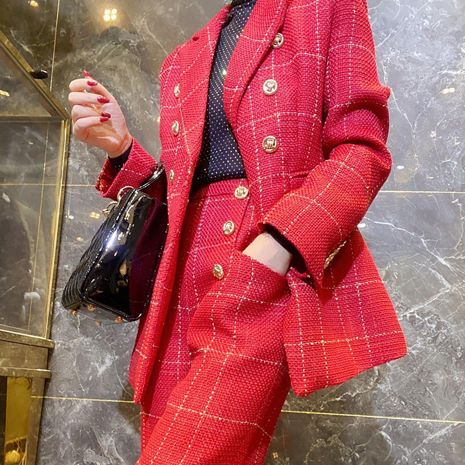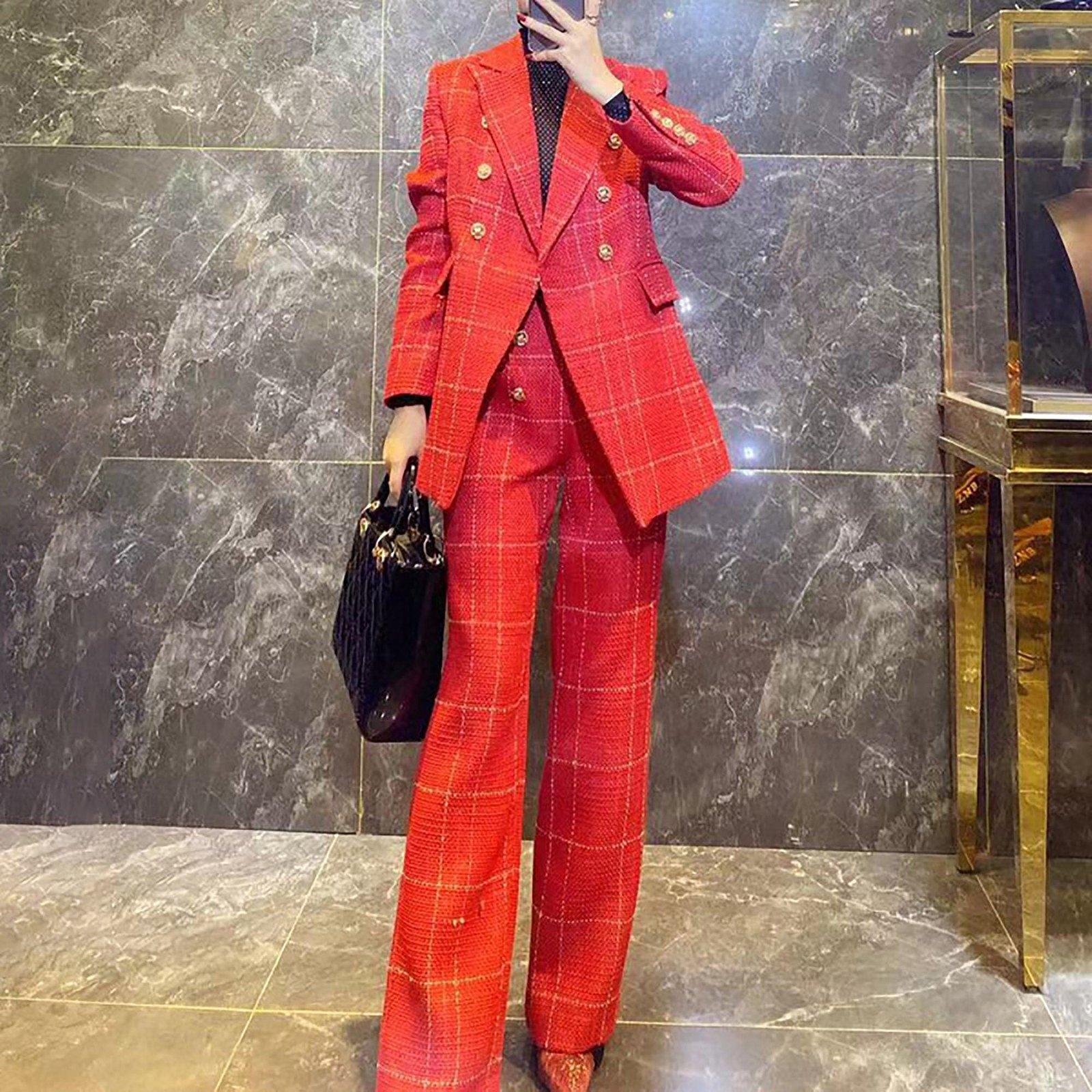 ❤Worn head-to-toe or mix-and-matched, our impeccably tailored woven set is a suiting essential you'll wear season after season. Blazer ●Split flare sleeves ●Front button closure ●Notched lapels ●Front flap pockets ●Polyester ●Machine wash, tumble dry Pants: ●Zip fly with hook-and-bar closure ●Front slant pockets ●Polyester ●Machine wash, line dry