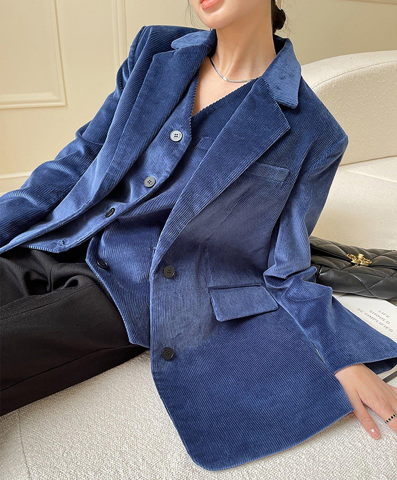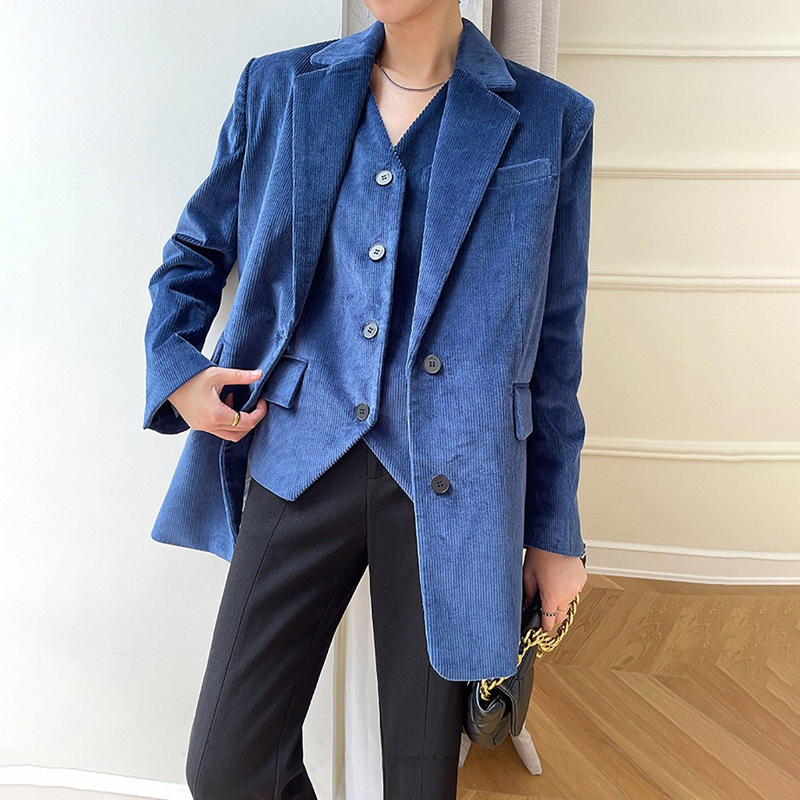 Women Corduroy Blazer Vest Set,Blue Blazer+Vest,Oversize Suit,Blue Suit Women,Cotton Blazer Coat,Suit Vest,Corduroy Suit Vest,Autumn Suit