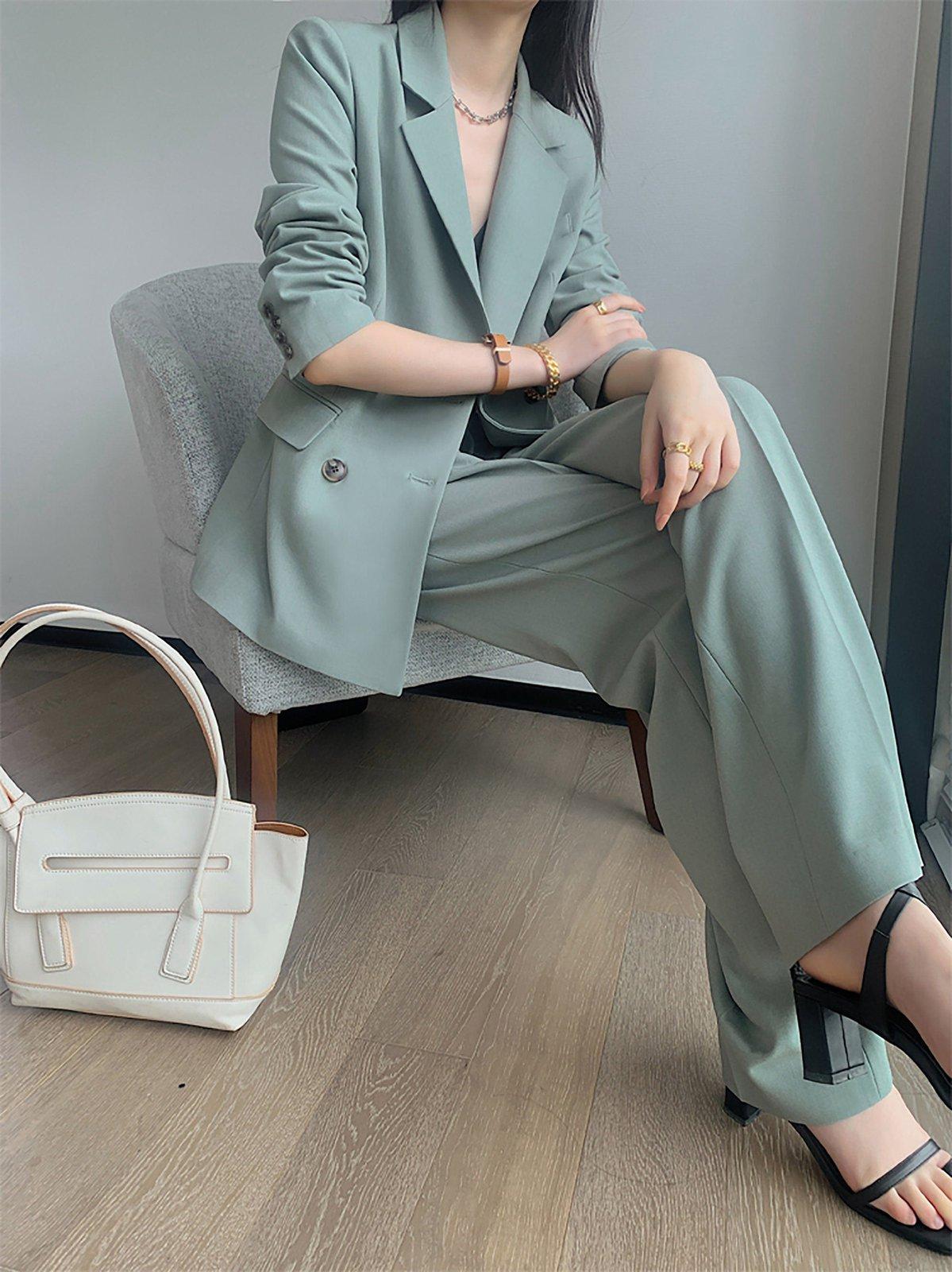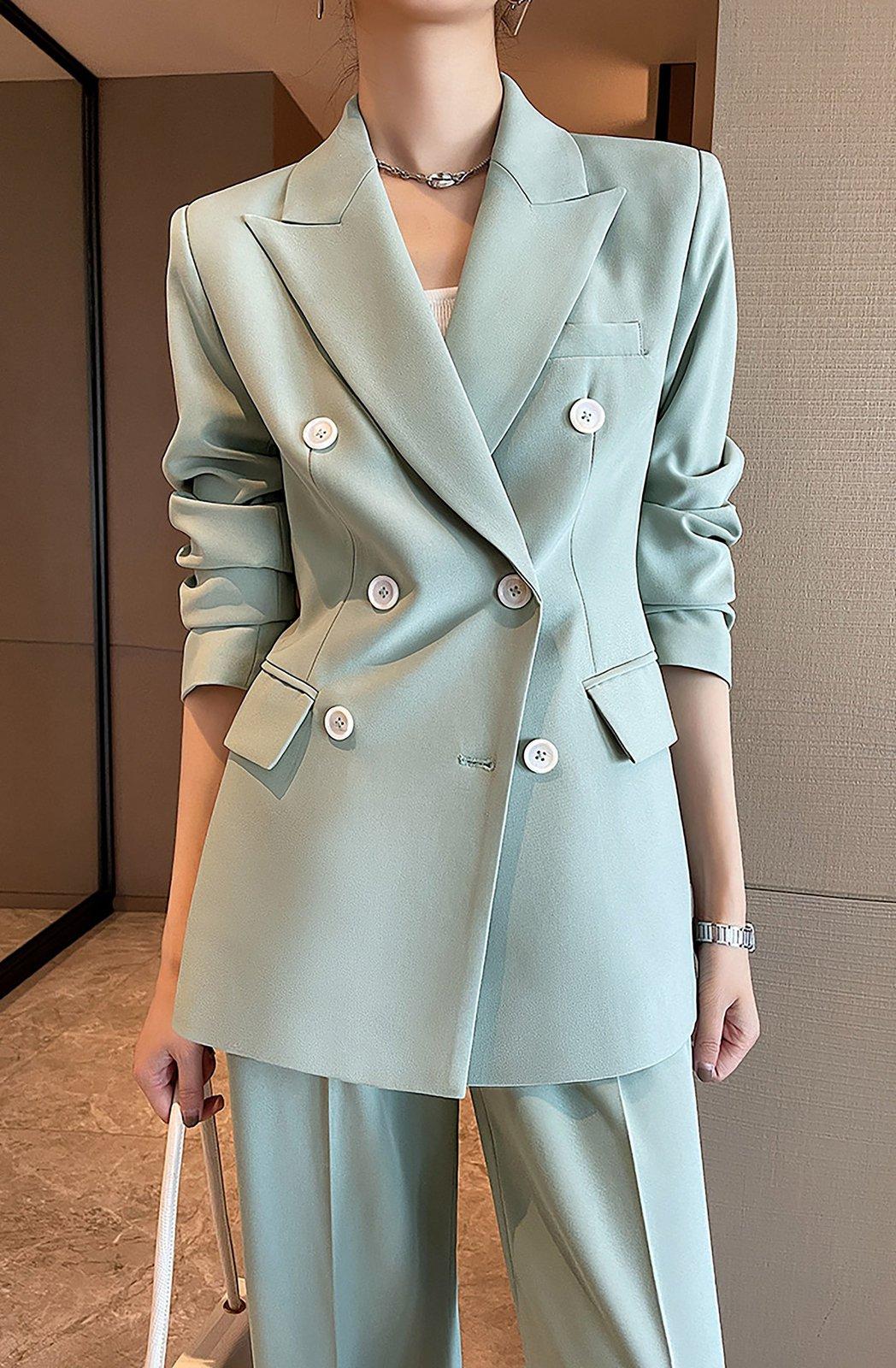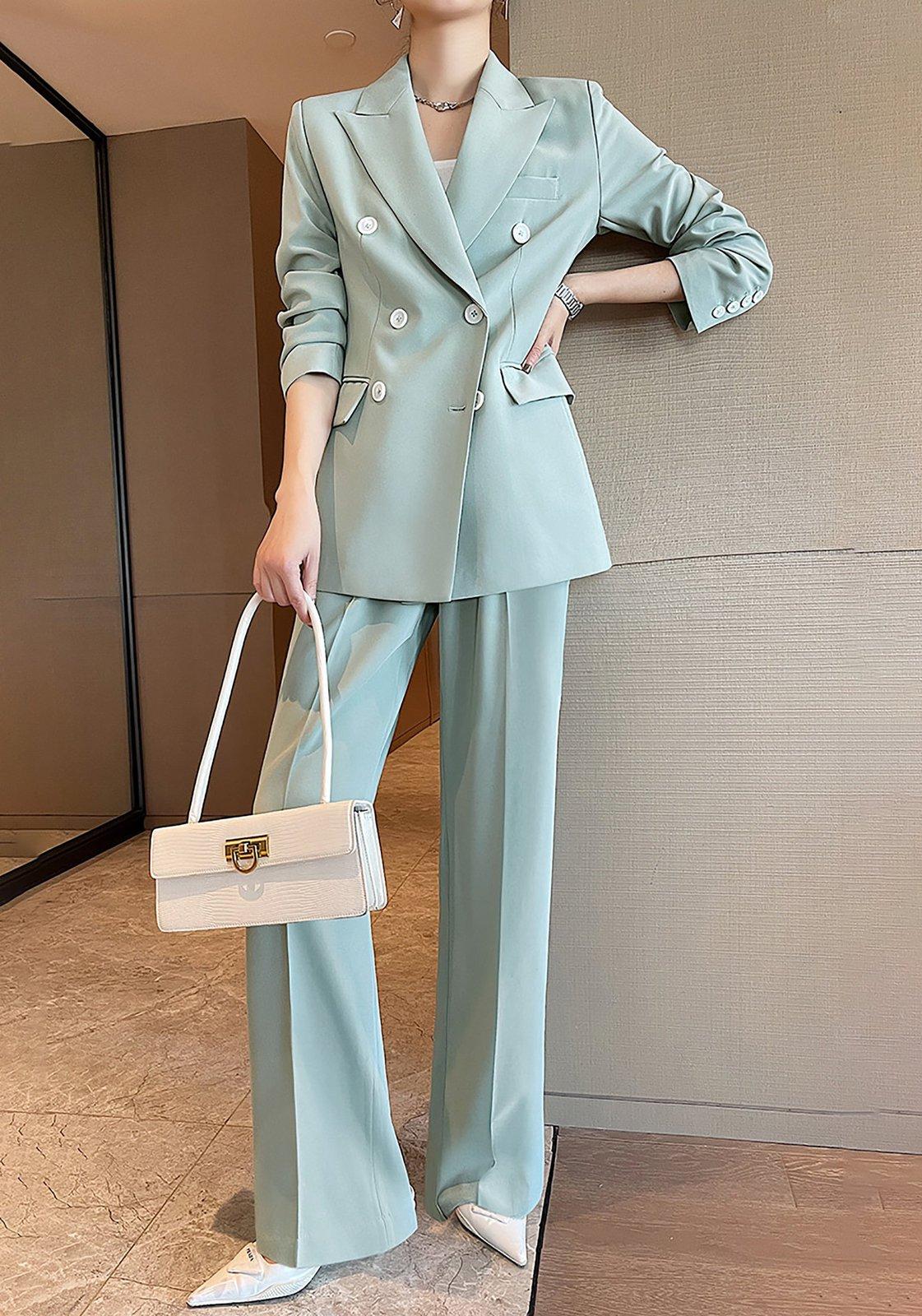Turquoise Double Breasted Blazer & Wide Leg Pants Set