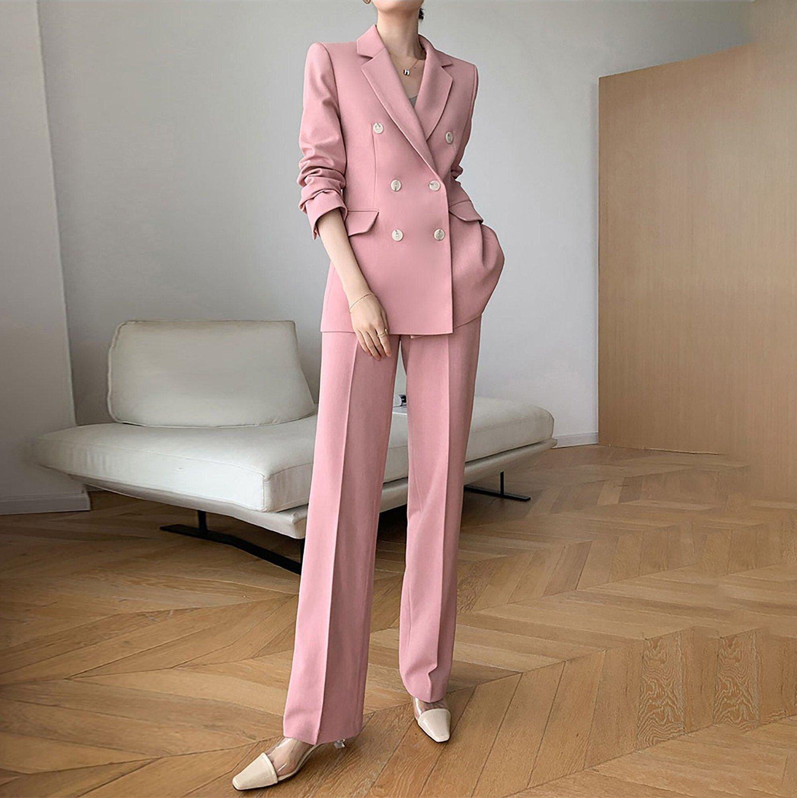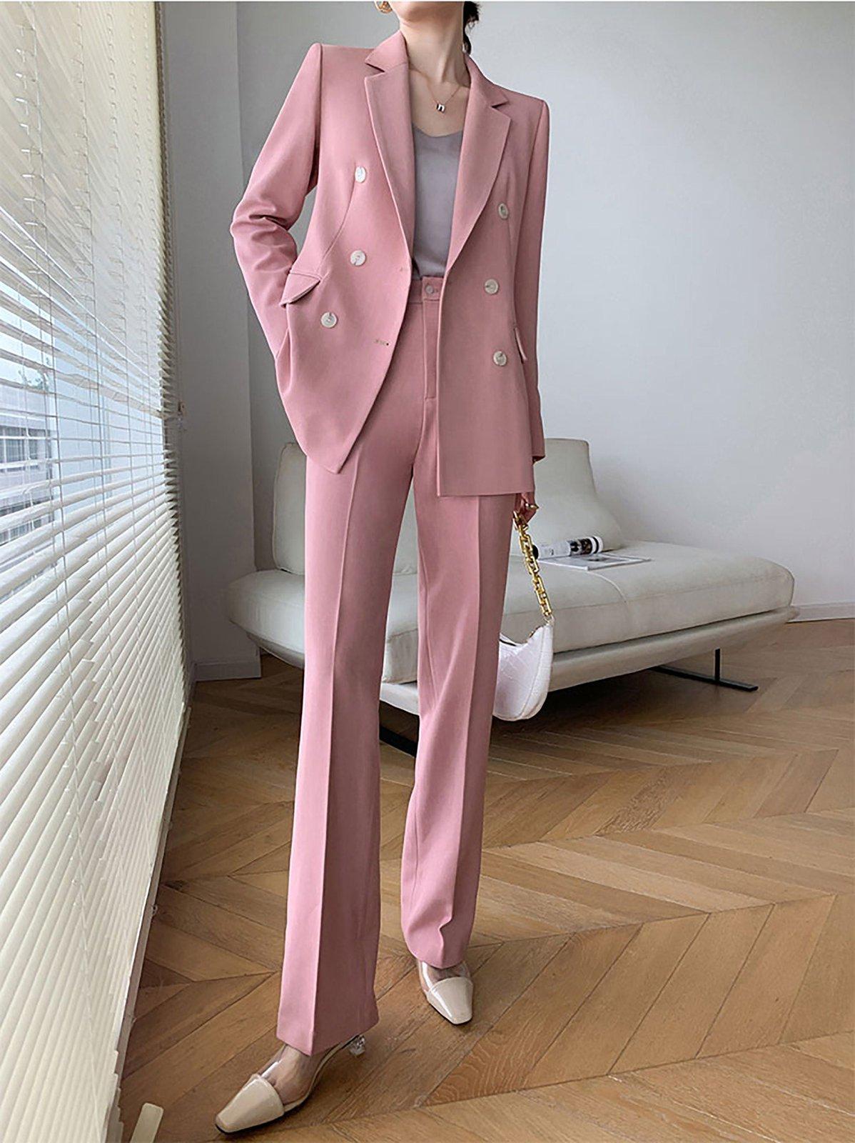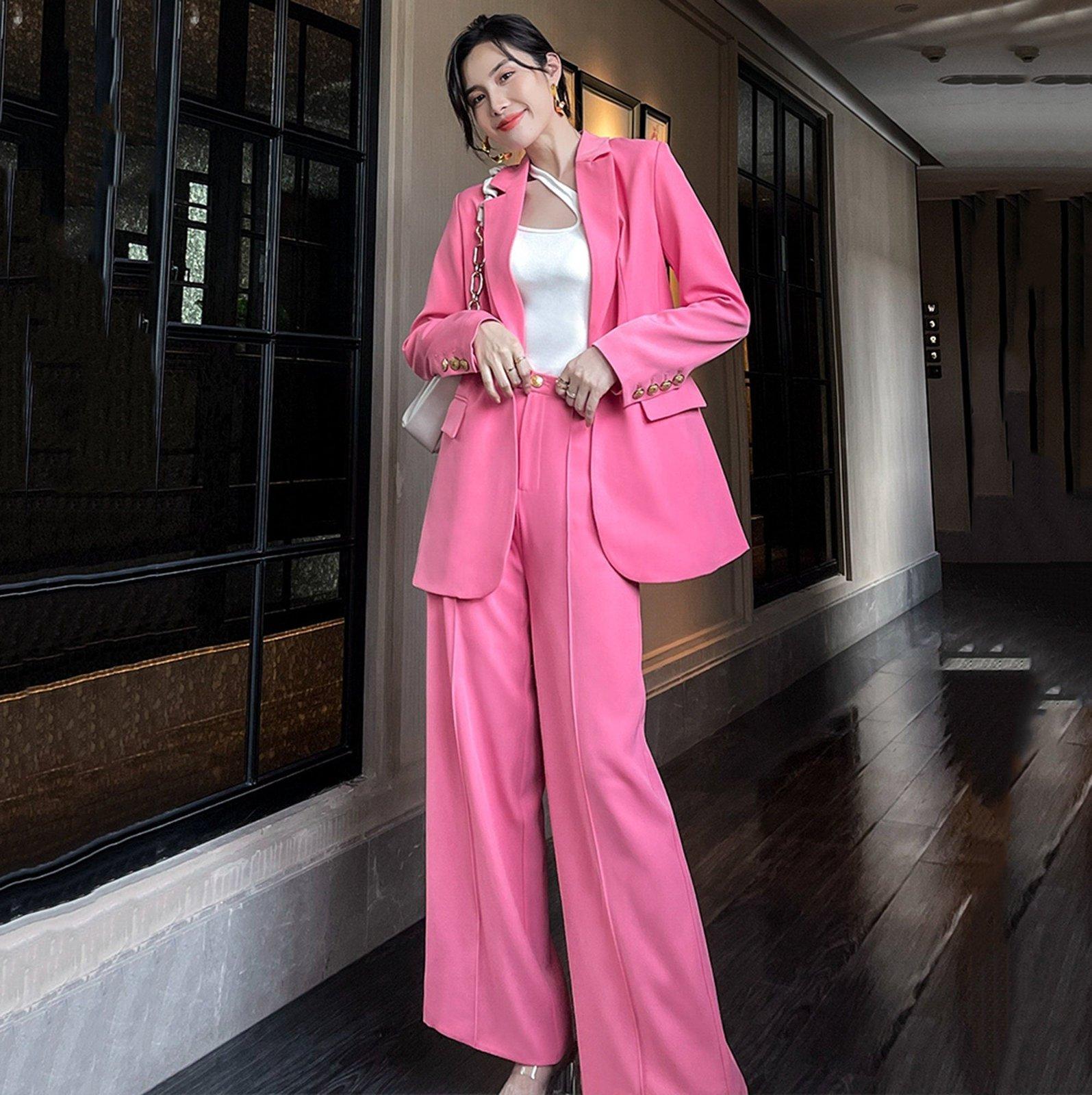 Pink One Button Blazer & Flare Leg Pantsuit