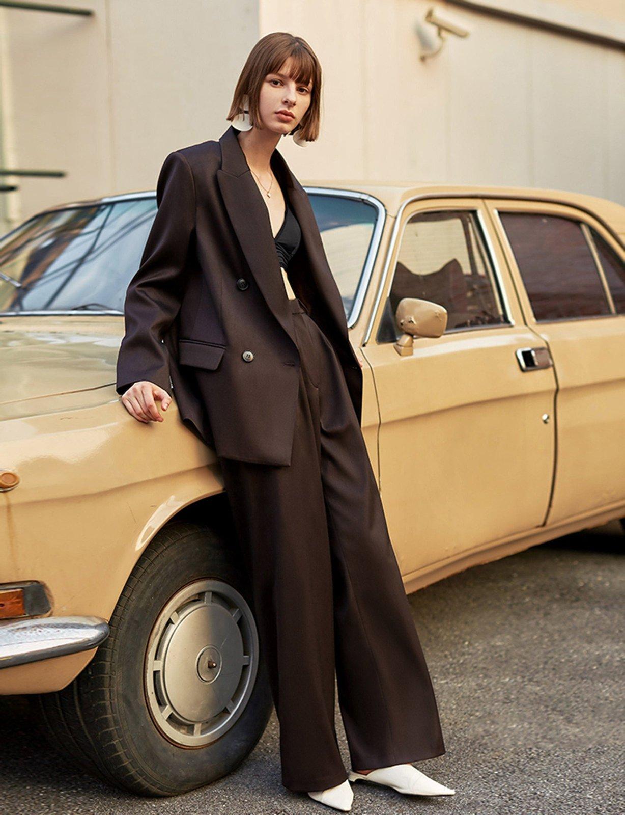 Double Breasted Blazer & Wide Leg Pants Set