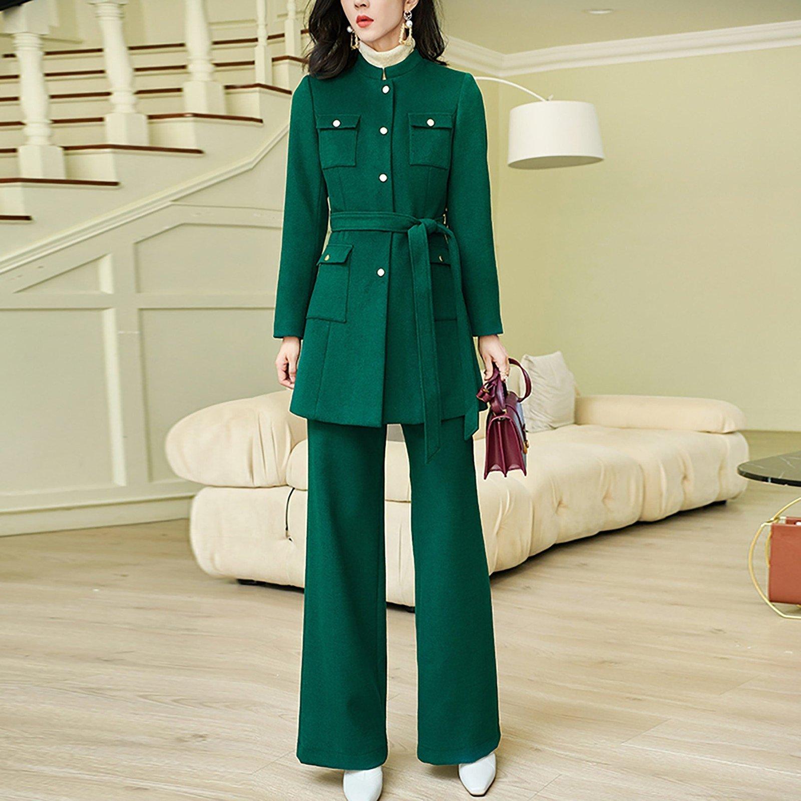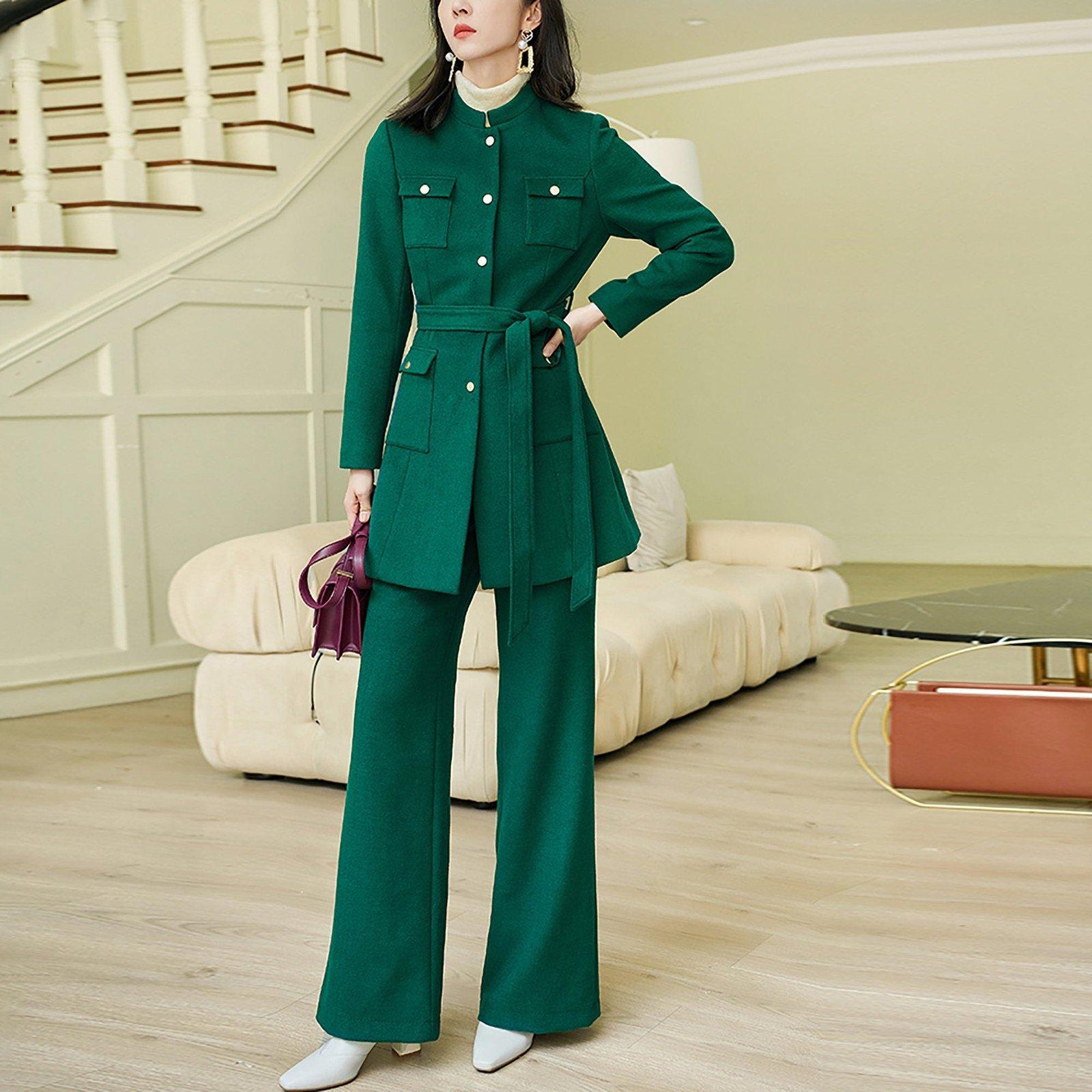 Carol Wool Blend Collarless Belted Jacket & Pant Set