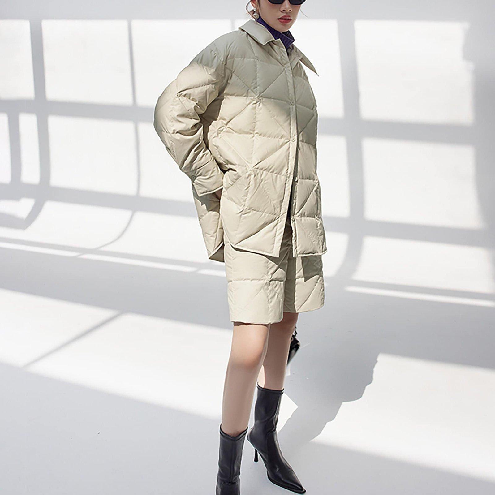 Women Down Shirt+Down Shorts Set,2 piece Down Jacket and down shorts set,Beige down coat shirt winter down shorts Suit set,winter pantsuit