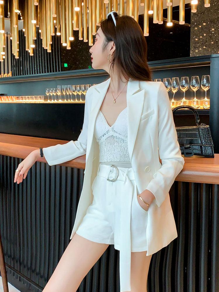 Double Breasted White Blazer & Shorts Suit Set
