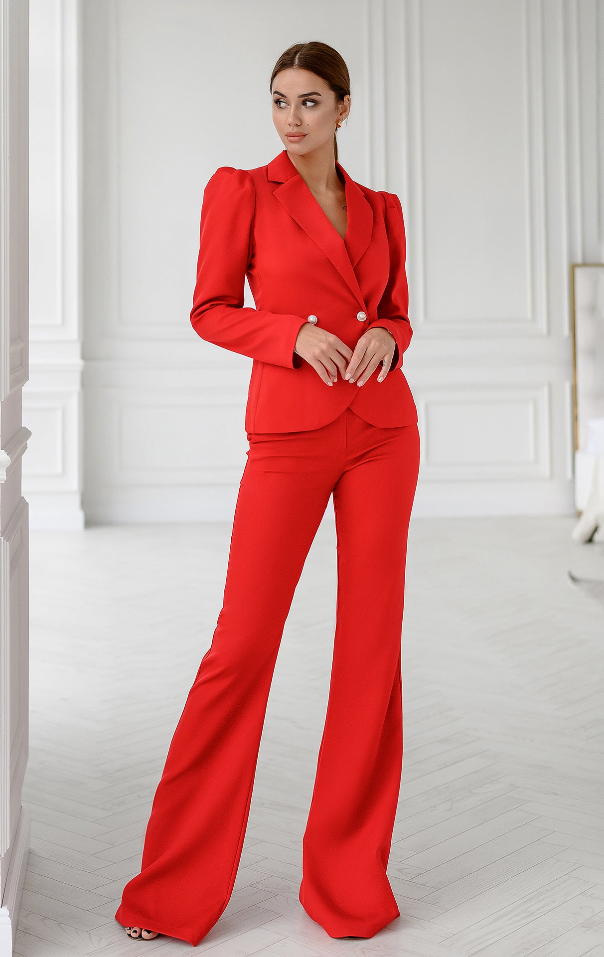 Cherry Double Berasted Blazer & Flare Pant Suit Set